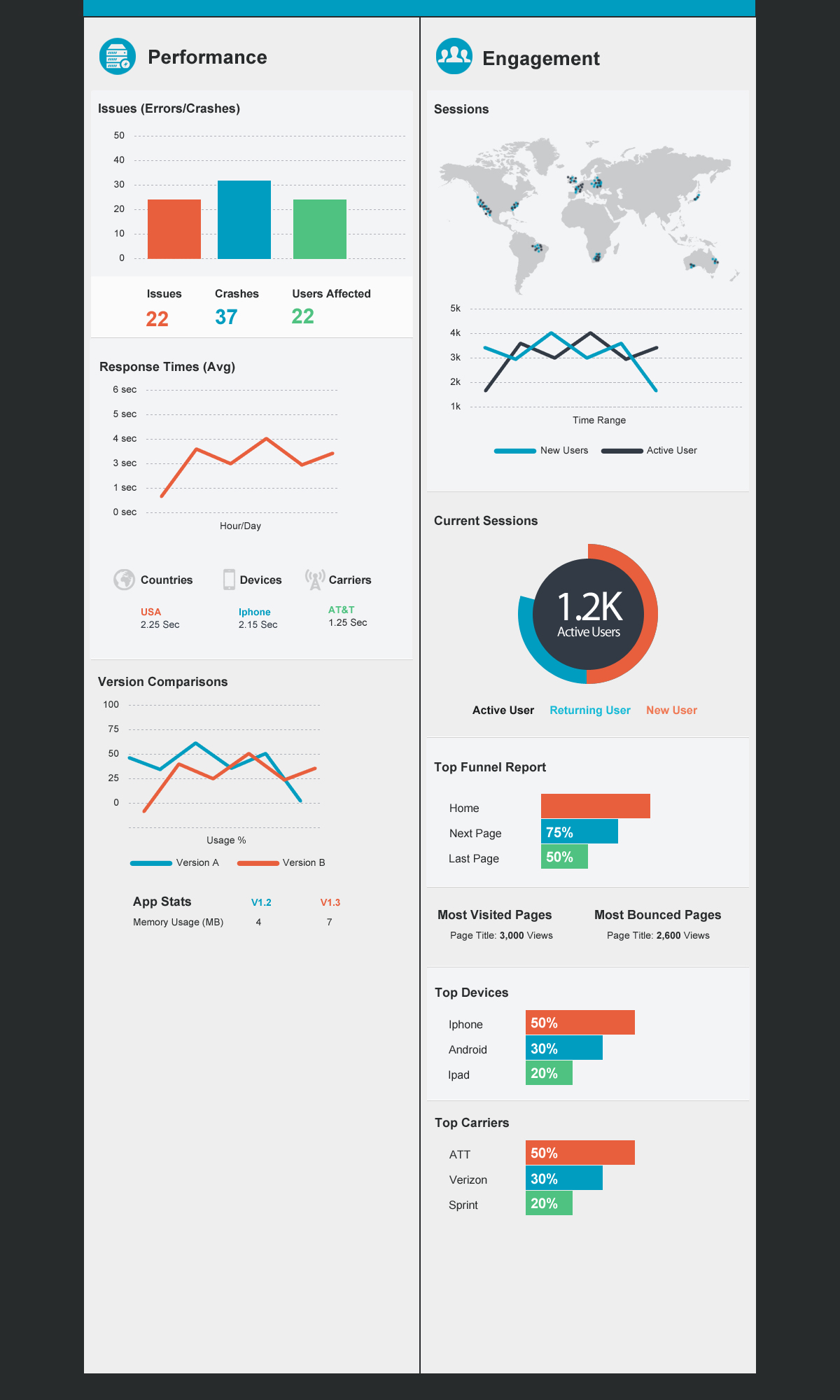 Providing crash analysis and instant visibility into the issues your app is having as a developer. Dashboard design to help developers track app performance and answer key questions developers need to know.